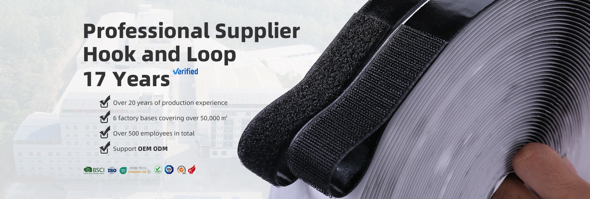 We have over 20 years of production experience in Hook and Loop, Webbing, Storage Straps and Ropes.We grasp the core manufacturing technology and independent research and development capabilities in order to provide the products to you which have the best value and the most cost-effective.